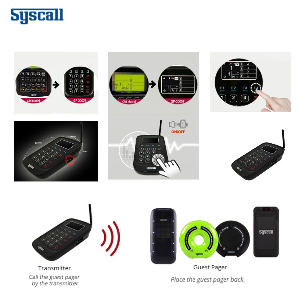 Syscall GP-1000T Verici, yoğun hizmet ortamları için tasarlanmış dayanıklı ve yüksek performanslı bir çağrı sistemidir. Restoran, kafe, hastane, otel ve benzeri hizmet noktalarında personel çağrısını hızlı ve güvenli bir şekilde iletmek için geliştirilmiştir.
